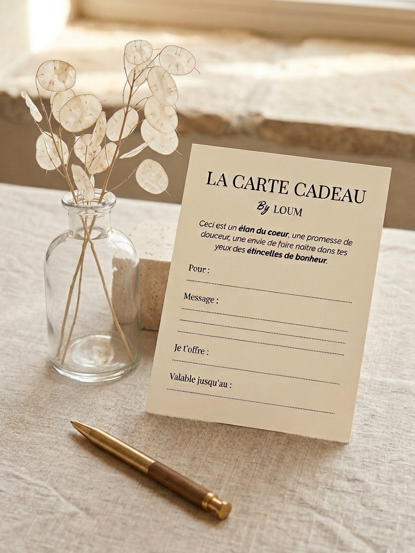 Sur la carte cadeau Liberté tu peux mettre un montant et laisser la personne choisir dans quoi elle souhaites le dépenser : célébration, accompagnement individuel, retraite, évènement, atelier. Comme ça tu es sûr.e de faire plaisir à tous les coups.